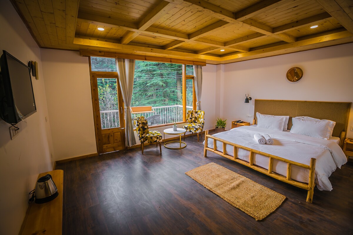 Spacious Room with Balcony is located adjacent to Hadimba Devi temple at a distance of 3.5 kms from Manali town. The room features colourful walls, comfortable beds, small seating area and mesmerizing sunrise & valley views with private balcony. A fan, cable TV and personal safe are included. En suite bathrooms come with a shower. The multi-cuisine restaurant cum bar serves choicest dishes & a wide variety of cocktails & mock-tails from around the world to cater to the varied taste of travelers.