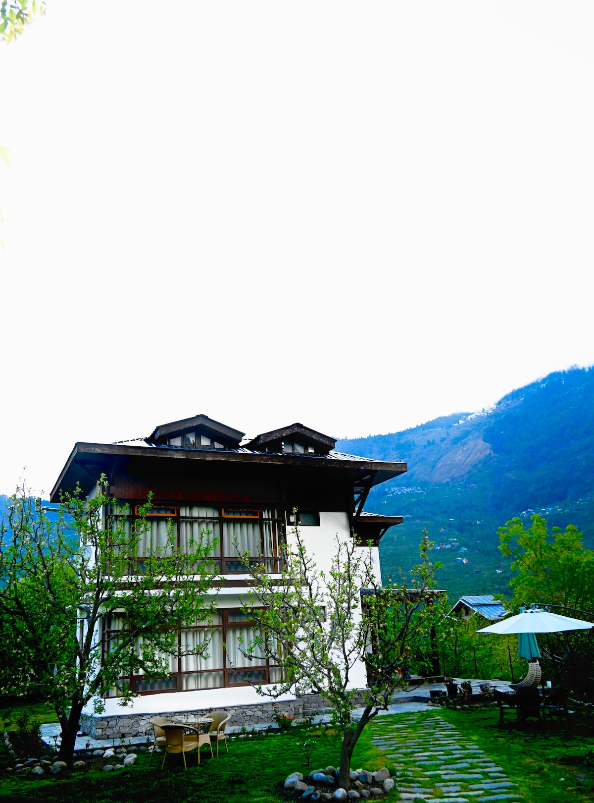 Discover an exceptional stay at The Obür, boutique luxury villa in the Himalayan orchards, where luxury meets comfort in an intimate setting. With only three delicately curated rooms, we offer personalized and bespoke travel experiences. Each room features double occupancy with panoramic views from the wrap-around balconies. Our Gazebo is a perfect recluse for bird watchers and nature lovers. We cater to both leisure and business travellers. Free parking is available on-site. In-house chef.