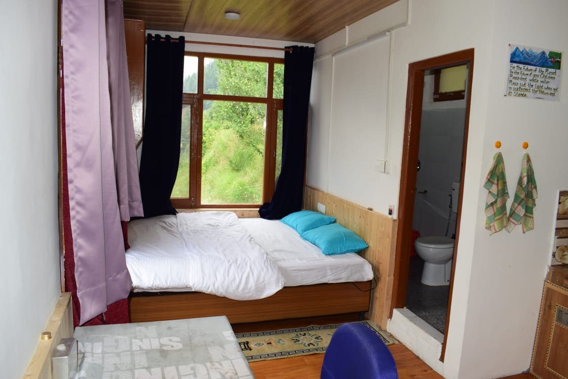 A newly built dedicated double deluxe room standing on the top of the mountain in Manali. It is a private place where only 2 - 3 houses are nearby this place not more than that. This place is unbelievably charming. From your room, you can see the entire valley and the glacier laden Himalayas of Kullu - Manali valley. This brand new double bedded room has attach kitchenette, hygienic washroom, study table, wi-fi and all basic amenities.
