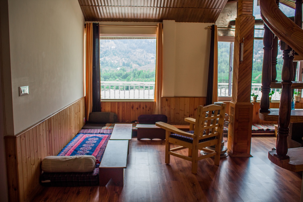 - Entire top floor - Common sitting area with heating setup(shared with host) - Co Living with a himachali family - Homely food - Transparent roof (Attached with common space). Can be used for stargazing - Balcony attached with every room - Wanderlust green garden - High Speed Internet - Two room with mezzanine floor which can accommodate four per room and one single room can accommodate two atleast - Kitchen, room heater & bonfire/tandoor are chargeable and payable at hotel directly No lifts
