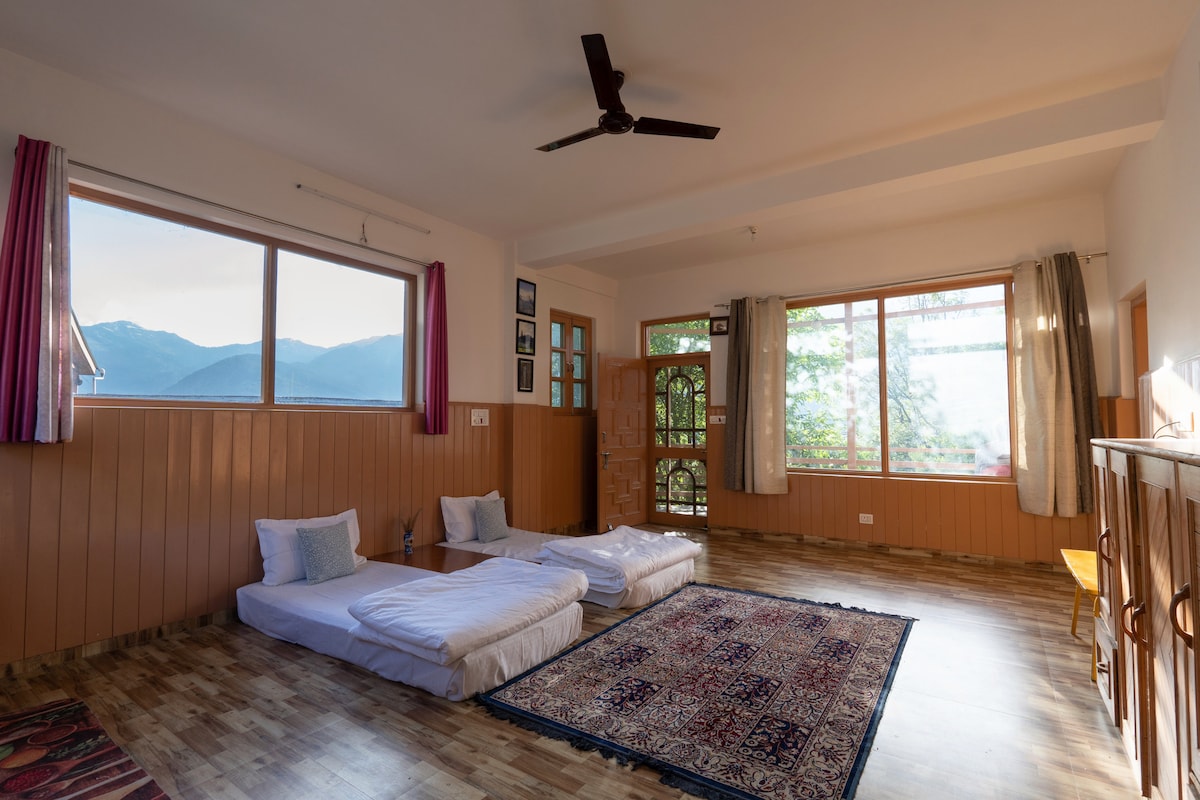 This home-stay is located at the most stunning views of manali. Walking away from hadimba temple and the nature walk. 3 kms from the mall road. 2 kms walk to the old manali bridge. Our property is 2 cottages where we have these floors of 2-3 rooms each with private balconies and beautiful outdoor seatings. This one is at the first floor. We have a in house cook where you can get anything made on order or choose from our in house menu.