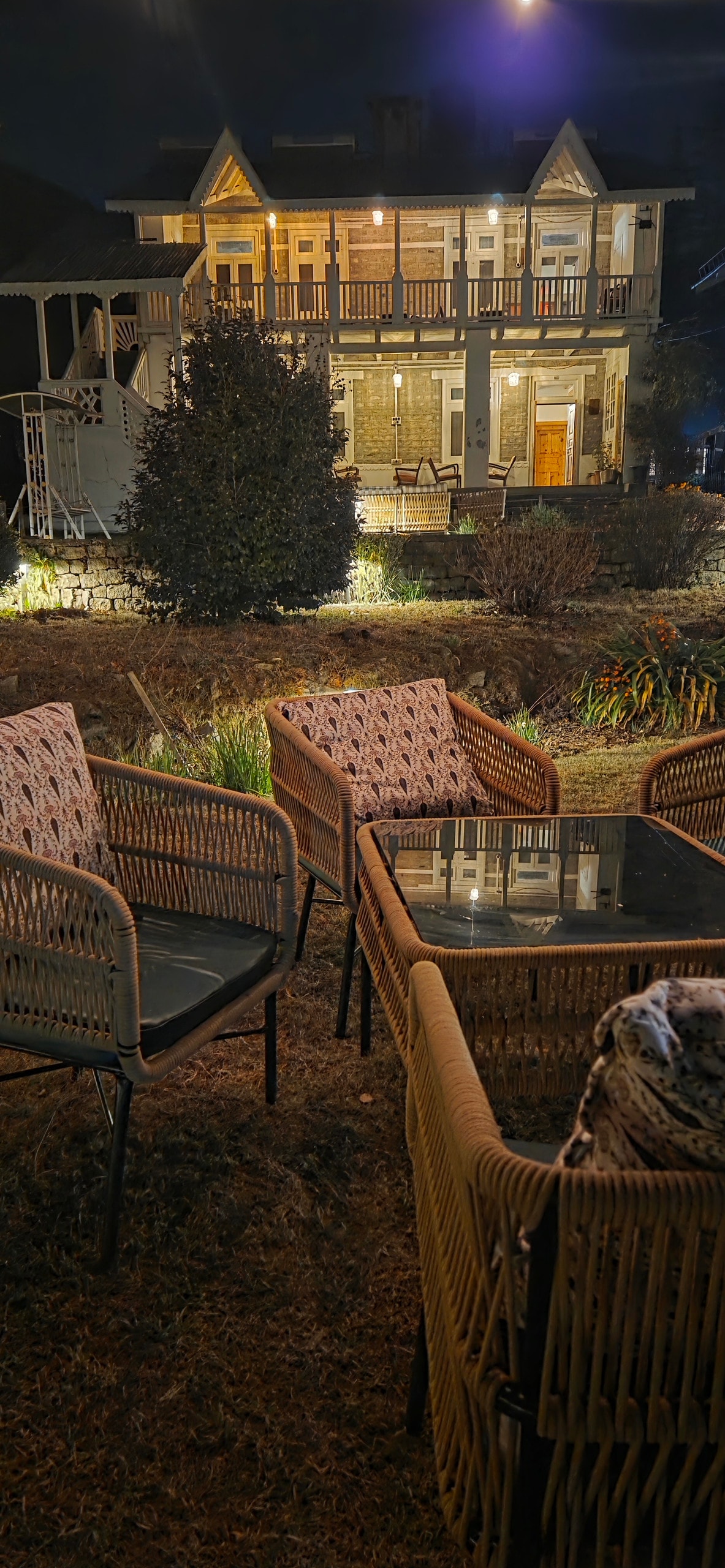 2 private bedroom attached 2 bathroom each room has balcony and common terrace seating mesmerizing view of manali valley right from from your bed A terrace seating there where you can relax in sun in morning and can enjoy party under the stars in evening on top of the property