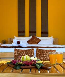 Namaste from mountains, Our Wellbeing farm stay is 4 rooms and 2 family suites premium stay in Kasol, where life slows down. Our rooms are made of mud and pine, giving you the comfort of luxury with the warmth of nature. Step outside and you’ll find yourself surrounded by our organic farms, where the food you eat is grown with care. A stay with us isn’t just about comfort — it’s about feeling at home in nature, eating fresh, and finding the peace you’ve been looking for.