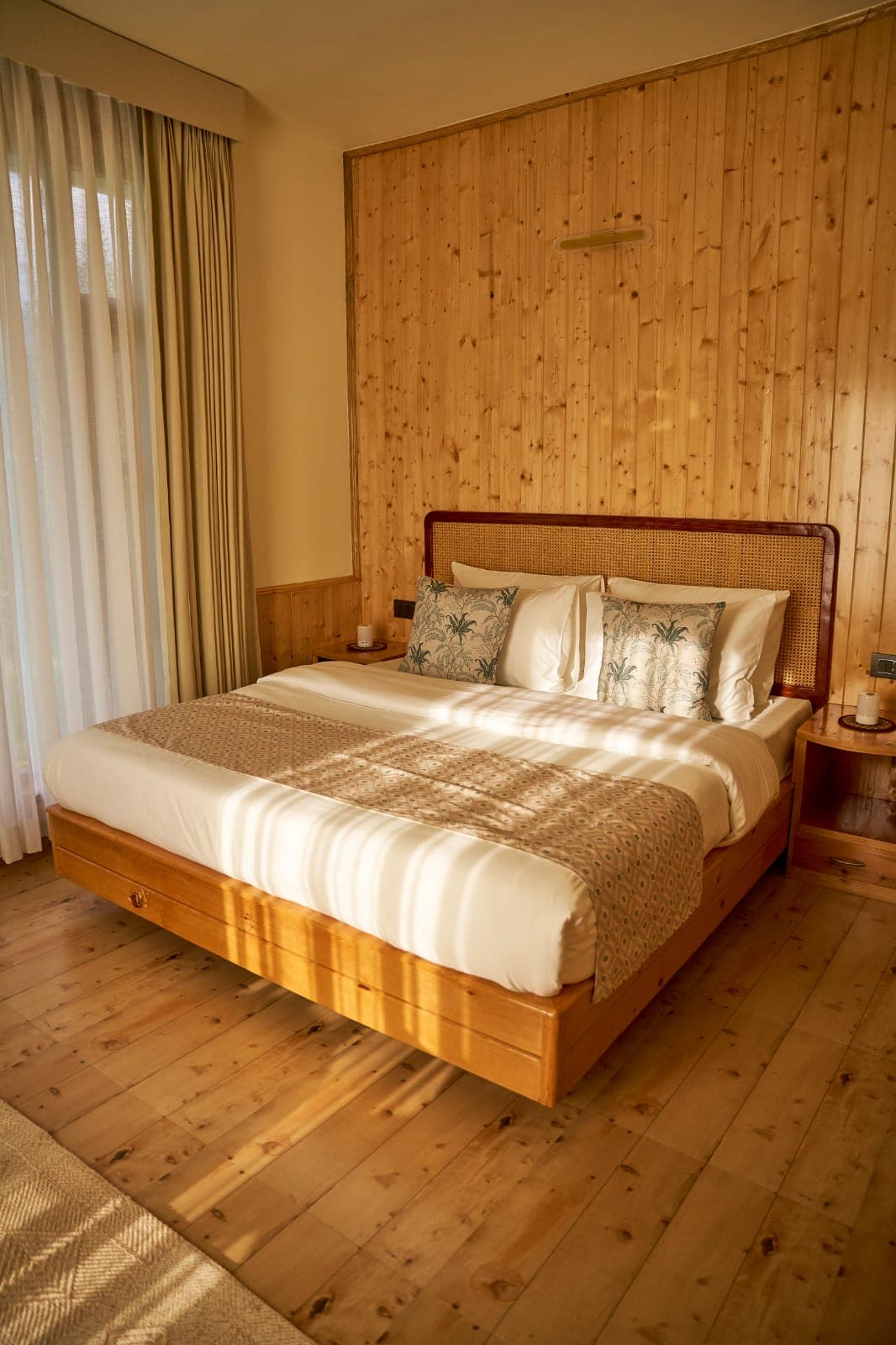 This combo is ideal for families or small group of 4. This exclusive standalone unit is split across two levels. The ground floor room, offering a step-free access, is ideal for elderly guests or anyone with wheelchair assistance. It also has a private sit out area. The first-floor room, accessed via a separate entry is filled with natural light and features a balcony with a cozy single-seater egg-shaped swing. Both the rooms feature king-size beds and attached bathrooms.