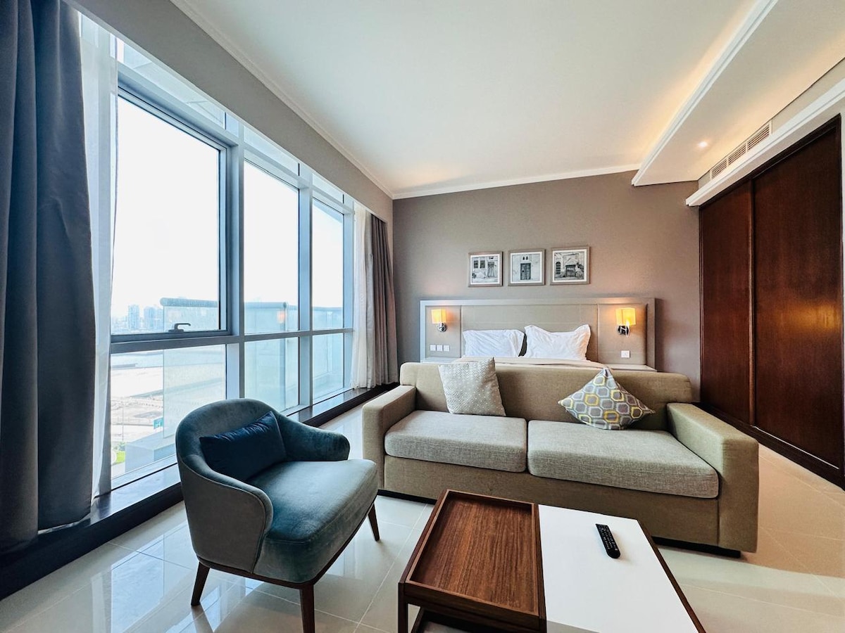 The apartment is in a high floor building within sea and city view. It is including a bedroom, an open kitchen and a living room. It has some of the best amenities in the area including a swimming pool, BBQ area, movie theater, etc. conveniently located near Juffair Mall, Oasis Mall, a pharmacy, and a laundry shop,Juffair is a vibrant, cosmopolitan neighborhood known for its bars, restaurants, and cafes, and is close to Bharain Fort, the National Museum, and 16 minutes from Bahrain Airport.