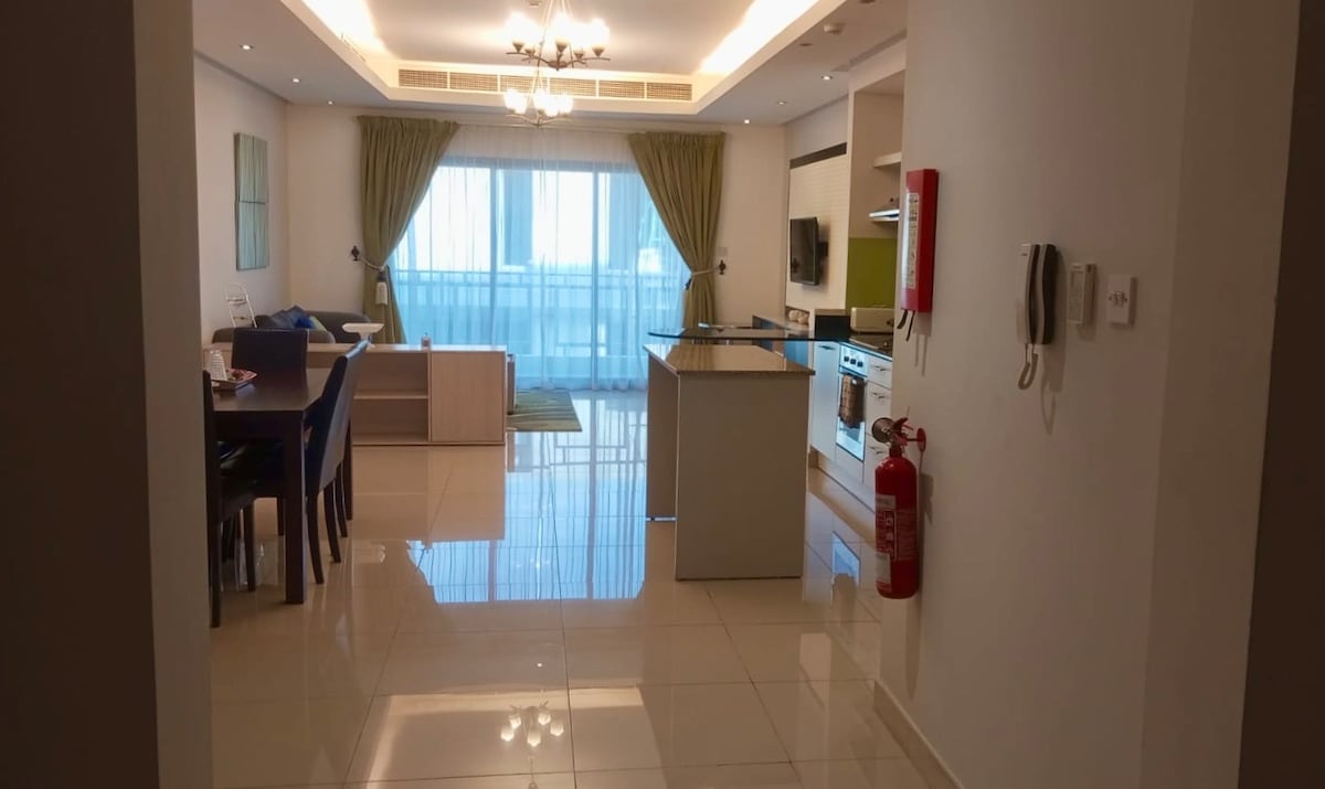 Cosy Apartment with an attractive Seaview & overlooking the City Center Mall of Bahraini Great location With nearby Shopping & Attractions - 1.2 km to Al Aali Mall - 1.3 km to City Center Mall - 1.3 km to Wahooo Water Park - 1.6 km to Seef small - 2.4 km to Dana Mall - 2.6 km to Bahrain Mall - 3.8 km to Bahraini Fort - 4.9 km to Bab Al Bahrain - 5.8 km to Moda Mall Fully Kitchen Equipped Amenities: Pool, Tennis, Gym, Mini Mart (24/7) Private Parking, Laundry, TV, WiFi, Iron, Safe Box.