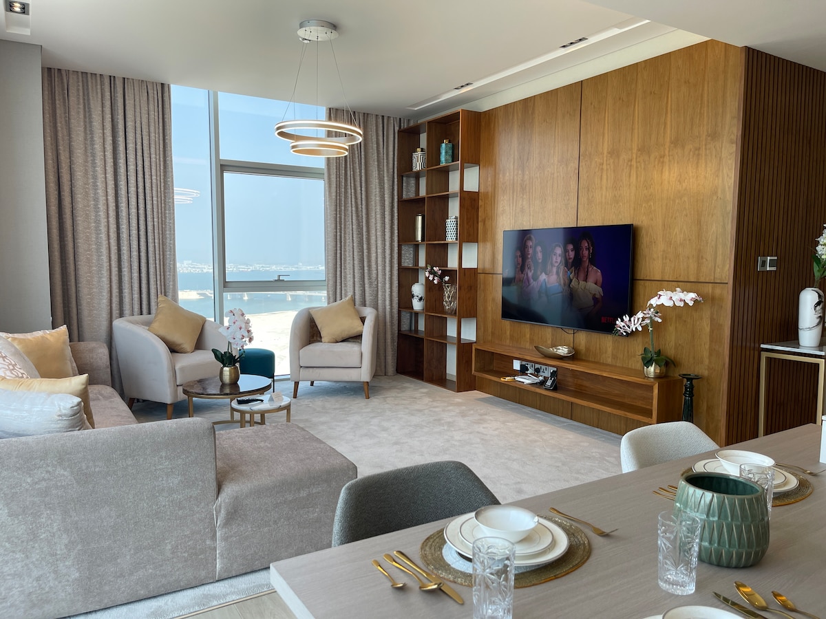 Live by the water in this sea view apartment in Bahrain at Address Residences, Marassi. Stylish interiors, premium finishes, and world-class facilities including a private beach, infinity pool, spa, and concierge. This sea view apartment is just steps from shopping malls, fine dining restaurants, cafes, and leisure attractions. Whether you’re looking for a holiday home in Bahrain, a serviced apartment for rent, or a long-term luxury stay, this property offers the ideal blend of comfort & luxury.
