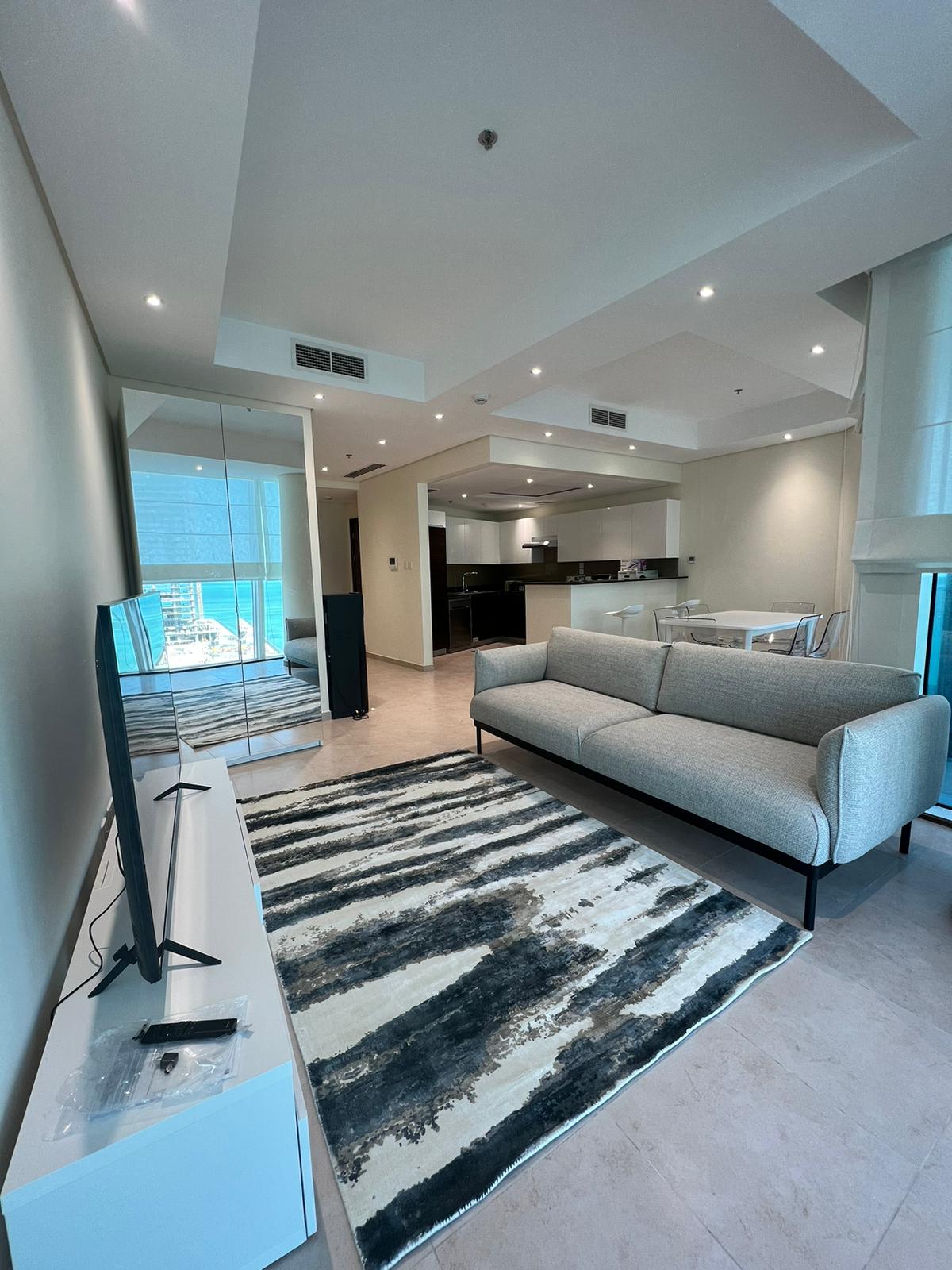 Welcome to a beautifully designed 3BR luxury flat, featuring two specious master bedrooms, and an additional maid’s room for extra convenience. Enjoy breathtaking sea view from every room, creating a serene, resort style atmosphere right in your home. Step out into two private balconies and soak in the uninterrupted views of blue water. The apartment includes 3 modern bathrooms, a fully equipped kitchen, and a bright, open plan living and dining area designed for comfort and elegance.