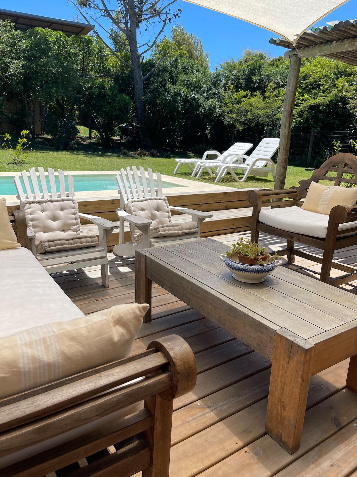 "Viento Azul" is a small house located in the La Barra area, 10 km from Punta del Este. Check-in 3:00 pm / Check-out - 12:00 pm Sleeps 3. Includes linens (sheets and towels), hairdryer, liquid soap, and pH balance. Fully equipped kitchen Living-dining room (cable TV, Netflix, 12 BTU air conditioning, sofa bed, 5G Wi-Fi) Ensuite bedroom: Queen-sized box spring, 12 BTU air conditioning, cable TV, Netflix, and safe. BBQ area with table and chairs. Large green garden.