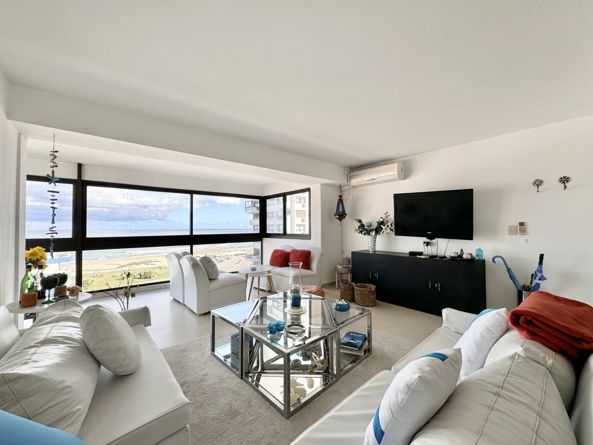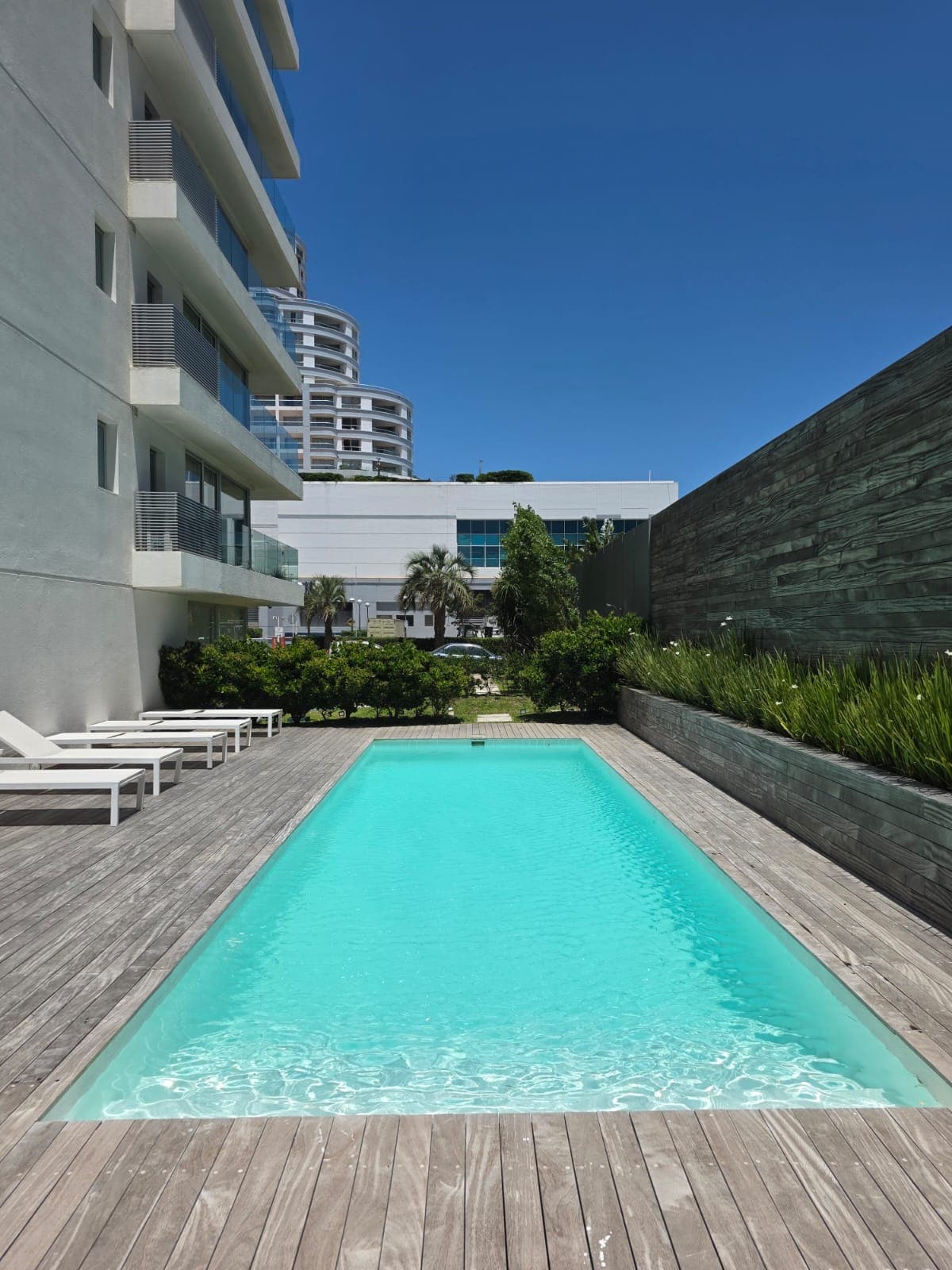 Precioso apartamento con vistas al mar a 120 metros de la playa, 1 dormitorio, living, baño, cocina y balcon, totalmente equipado y super comodo. El edificio cuenta con piscina climatizada interior con un jacuzzi , gimnasio, recepcion, dos piscinas exteriores y parrillero , un parrillero en la terraza con vista a la playa Mansa y la Brava y tambien parking. En una zona llena de restaurantes, mercados y mas. 😊