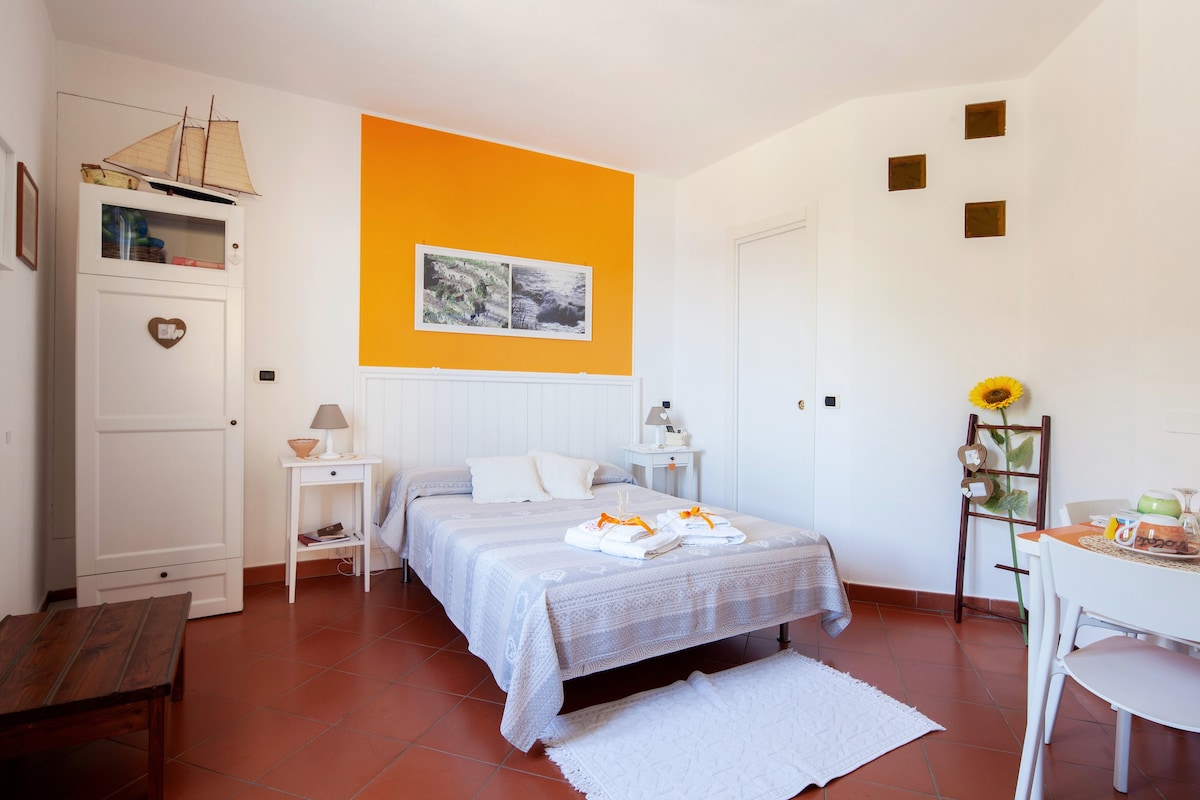 A wide, airy, high ceiling studio at exactly the heart of the village of Riomaggiore, ideally situated for visiting the Cinque Terre. The railway station, the boat landing, the shuttle of the National Park, the paths at a walking distance of few meters. All kinds of shops at the same distance. The studio has been renovated in 2016, keeping when possible, the original features (1600); it is well soundproofed and air-conditioned and equipped with all comforts, with a large bathroom