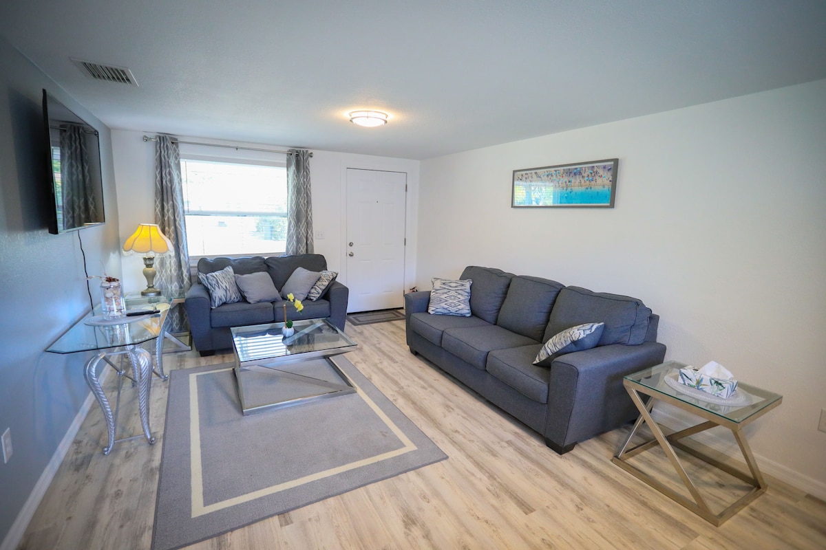 距离海滩7分钟,2张特大号双人床,带围栏的院子,可携带宠物