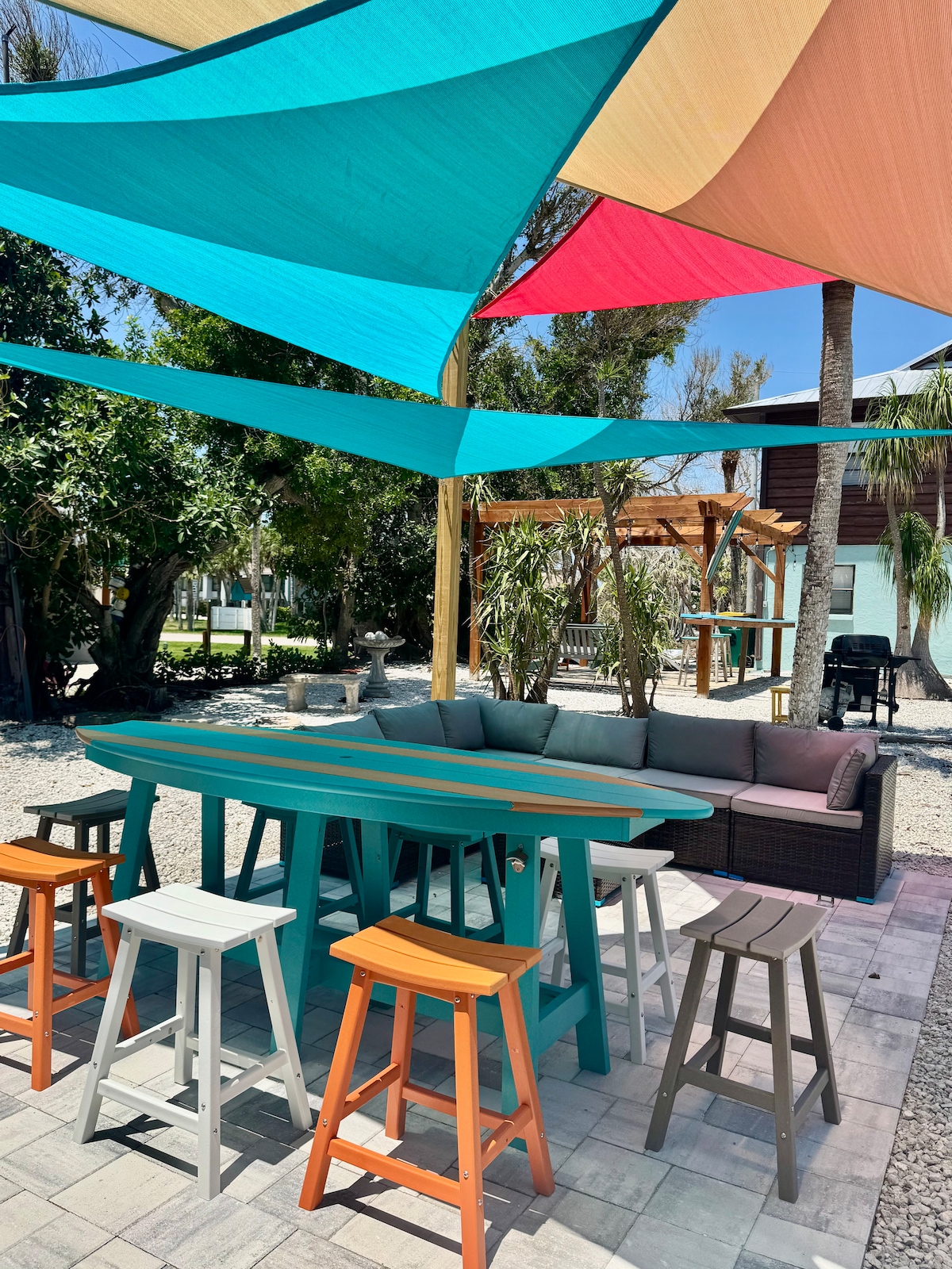 Welcome to your private island retreat! This charming bungalow is tucked among swaying palms and the natural serenity of the island, offering the perfect blend of comfort and laid-back coastal living. Middle Beach Road is NOW OPEN, restoring full access to the entire island, all beaches, shopping, restaurants, and tiki bars. Enjoy a short walk to private beach access, nearby public beaches, dining, groceries, and island attractions—then relax outdoors to the soothing sound of the waves.
