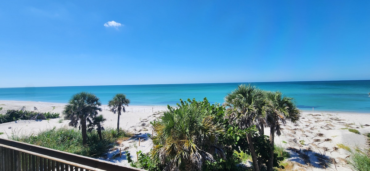Enjoy ocean views in this 2 bed 2 bath spacious beach side 4th floor condo at Sea Shell Updated coastal decor across from Capt Curts, restaurants, grocery, coffee, ice cream Easy to WALK everywhere No car needed Perfect location Great for families Sleeps 6- 1 king & 2 queens & walk in closets Balcony with GULF views Private beach steps away from bldg. Free beach loungers. POOL Siesta Beach #1 in US Quick Wifi Superhost- 325+ reviews that ave FIVE STAR!