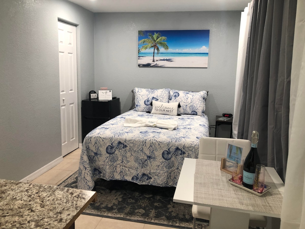 Welcome to your modern Guest Suite in Sarasota – Adults Only, Private & Peaceful 🌞 Enjoy your own private space—no shared areas—with a separate entrance and parking for two cars. The suite includes: A cozy queen bed A full bathroom A well-equipped kitchenette with a microwave, small refrigerator, coffee maker, and 2-burner cooktop A secluded outdoor patio with a solar shower, ideal for rinsing off after a beach day A mini-split A/C unit to keep you cool during Florida’s sunny days