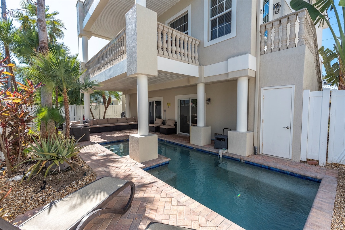 Luxurious waterfront home with bay and and canal view, new custom kitchen with a view to the pool and your own private tiki bar, dock that can accommodate up to 21 ft boat , whole house just received a complete inside and out make over. Tropical coconut palms, outside patio and grill. Fish on the dock and watch dolphins and manatee. Truly a tropical paradise just 7 minute Walk to your own private beach. minutes from St Armand’s circle. feel free to reach out with any questions or requests