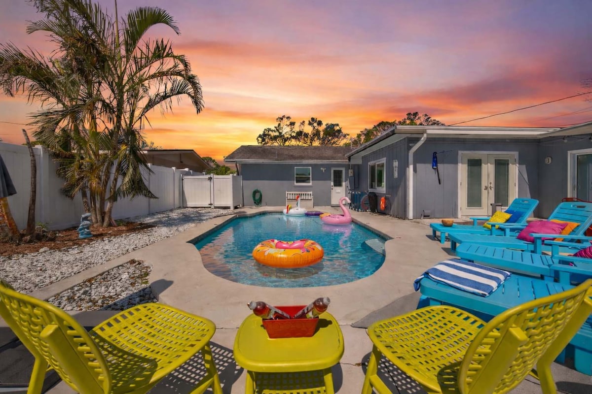 靠近Siesta Key的私人泳池+游戏室|可供9人入住