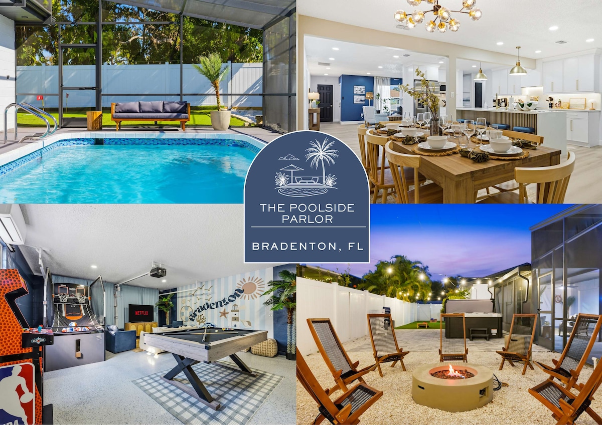 🌴Welcome to Beachway Haven! This 5-Star ⭐️ hideaway is just mins from Anna Maria Island's Pristine Beaches & the Gulf of Mexico. Dive into relaxation with your own Heated Saltwater Pool & Spa Hot Tub, nestled in a tropical oasis. Only a skip away from Golf Courses, Nature Parks, IMG Academy, & Palma Sola Causeway's Beach Access – your gateway to Horseback Riding, Kayaking, & endless sandy adventures. Shopping & dining are only a few mins away too!
