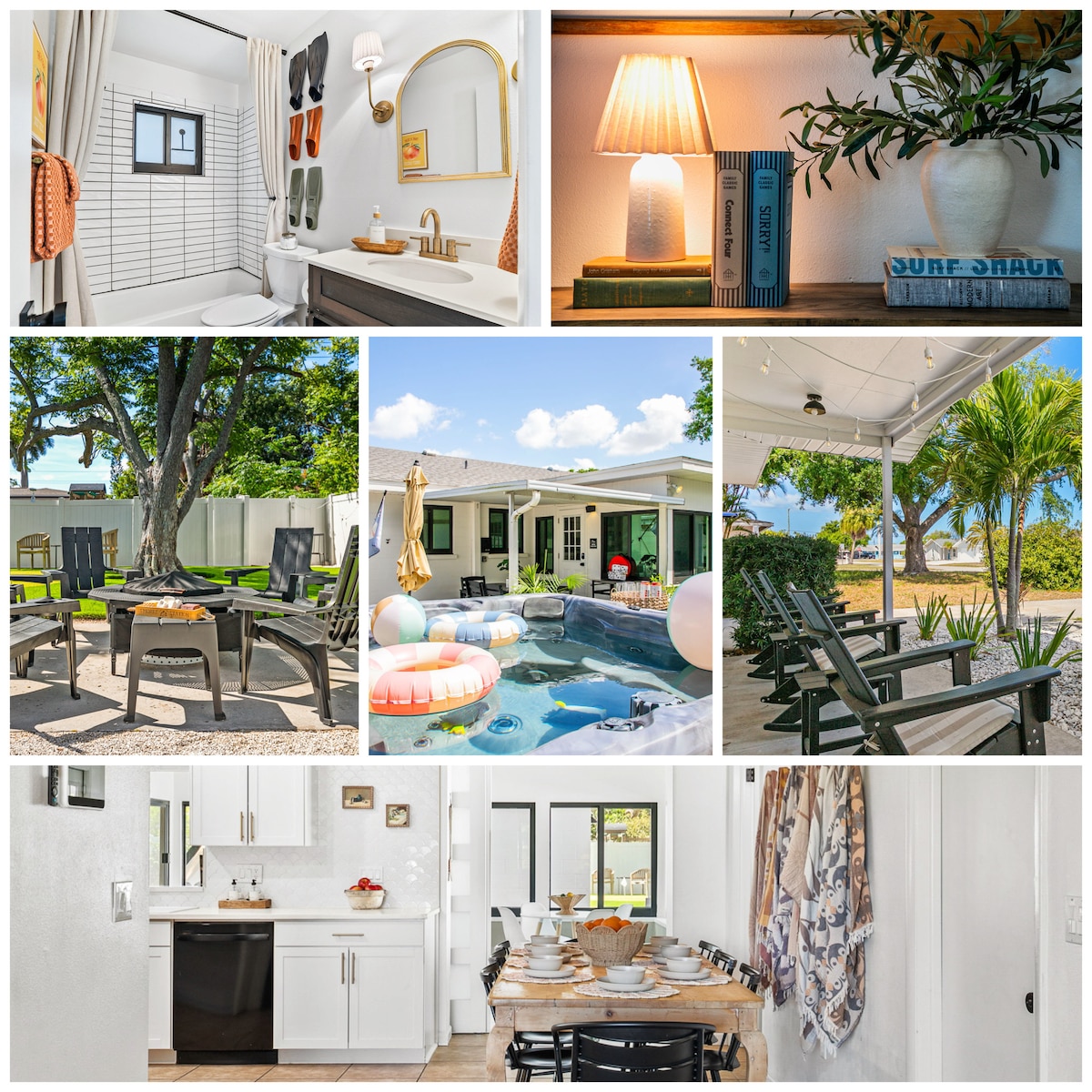 Beautifully renovated 5 bedroom home. Located 3 minutes from beach access and 9 minutes to Anna Maria Island. A massive waterfront patio with string lights and heated pool and spa encompass this house. Master bedroom with walk-out to spa. Custom double walk-in shower in master suite. Family room with 86" television, decorative fireplace, and 15' ceiling. Roku TV’s in every bedroom. Outdoor propane grill. Beach chairs, umbrella, and cart. We welcome you to Casa Bella.