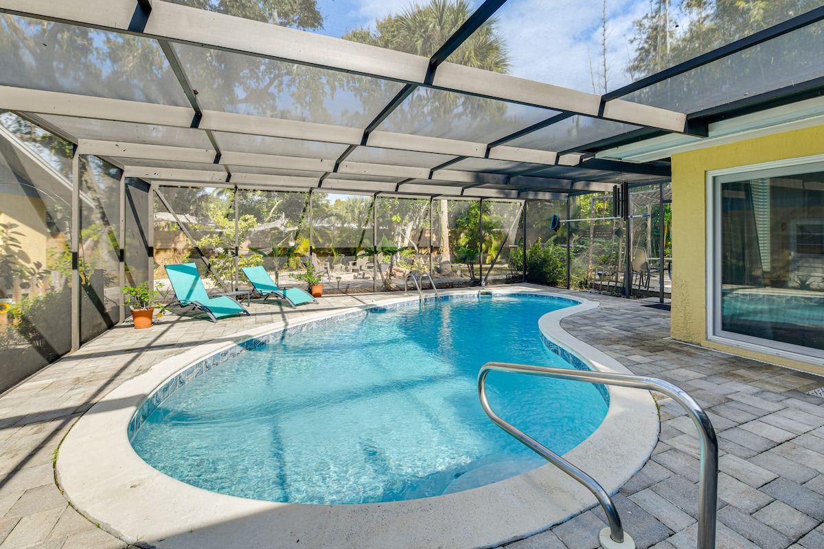 Couple's Retreat | < Half-Mi to Sarasota Jungle Gardens Experience the perfect blend of leisure, convenience, and sun-soaked fun when you escape with a special someone to this Sarasota vacation rental. Enjoy a refreshing swim or lounge in the hammock before walking a block to the Gulf and taking in the beautiful sunset. Staying inside? With a charming living space, a workstation, and an in-unit laundry area, this 1-bath studio has everything you need. The vibrant Cultural Coast awaits!