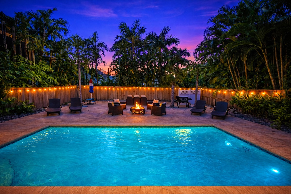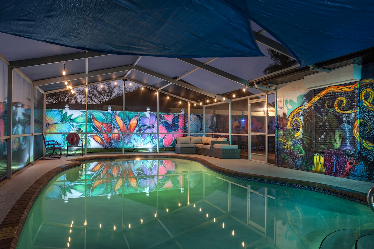 🌴 Heated Pool • Spa • Tiki Hut • 10 Min to Siesta Key Private pool oasis just minutes from Siesta Key — designed for relaxing days and unforgettable nights. Enjoy a heated pool, spa with waterfall, tiki hut lounge, and a fully screened lanai for indoor-outdoor living. Relax poolside, play outdoor games, and unwind under ambient evening lighting. Perfect for families, couples, and groups seeking a memorable Florida getaway.