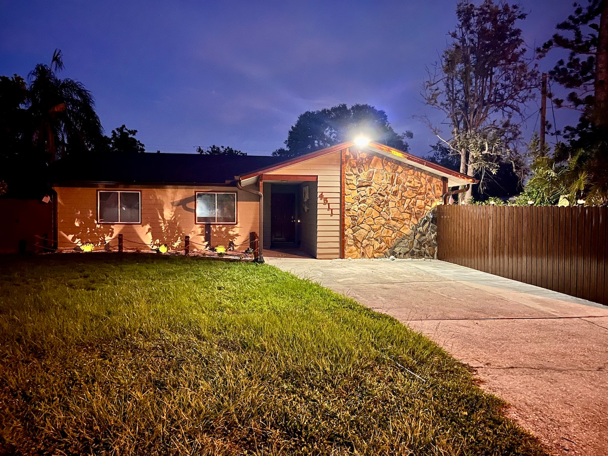 Now Booking winter and spring getaways! Reserve your getaway dates for December through April now! 30% off stays of 28 night or more!! Updated bath & kitchen Enjoy 4k TV and a work station inside, or our BBQ propane grill & fire pit outside in the large backyard w/ privacy fence. Walkable to great restaurants like Walt's Fish Market & Trader Joe's (across the street) & other shopping stores. We are only a few miles from the #1 Beach in the USA, Siesta Key Beach! Dogs up to 50lbs welcome.
