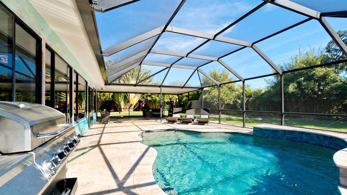 Luxurious waterfront home with bay and and canal view, new custom kitchen with a view to the pool and your own private tiki bar, dock that can accommodate up to 21 ft boat , whole house just received a complete inside and out make over. Tropical coconut palms, outside patio and grill. Fish on the dock and watch dolphins and manatee. Truly a tropical paradise just 7 minute Walk to your own private beach. minutes from St Armand’s circle. feel free to reach out with any questions or requests