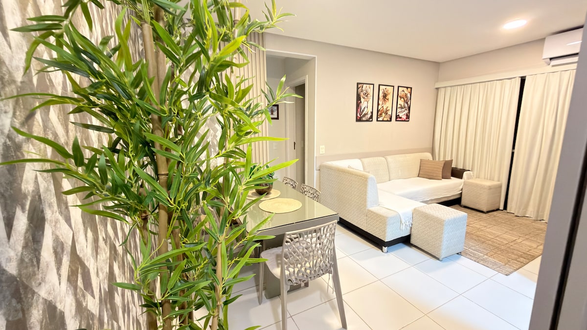 🌙 Morada Ingá do Luar – Novo Espaço em Ponta Negra ✨ Acomodação • Apartamento completo com dois quartos, dois banheiros e uma charmosa vista panorâmica. • Totalmente climatizado. 🛏️ Quartos: Suíte principal: cama King Size com pillow top, enxoval bordado da Tok&Stok. Segundo quarto: duas confortáveis camas de solteiro, bancada planejada para home office. 🛋️ Sala: • Sala aconchegante equipada com Alexa, perfeita para criar o clima ideal da sua estadia. Uma mesa com 4 lugares, mesa posta.