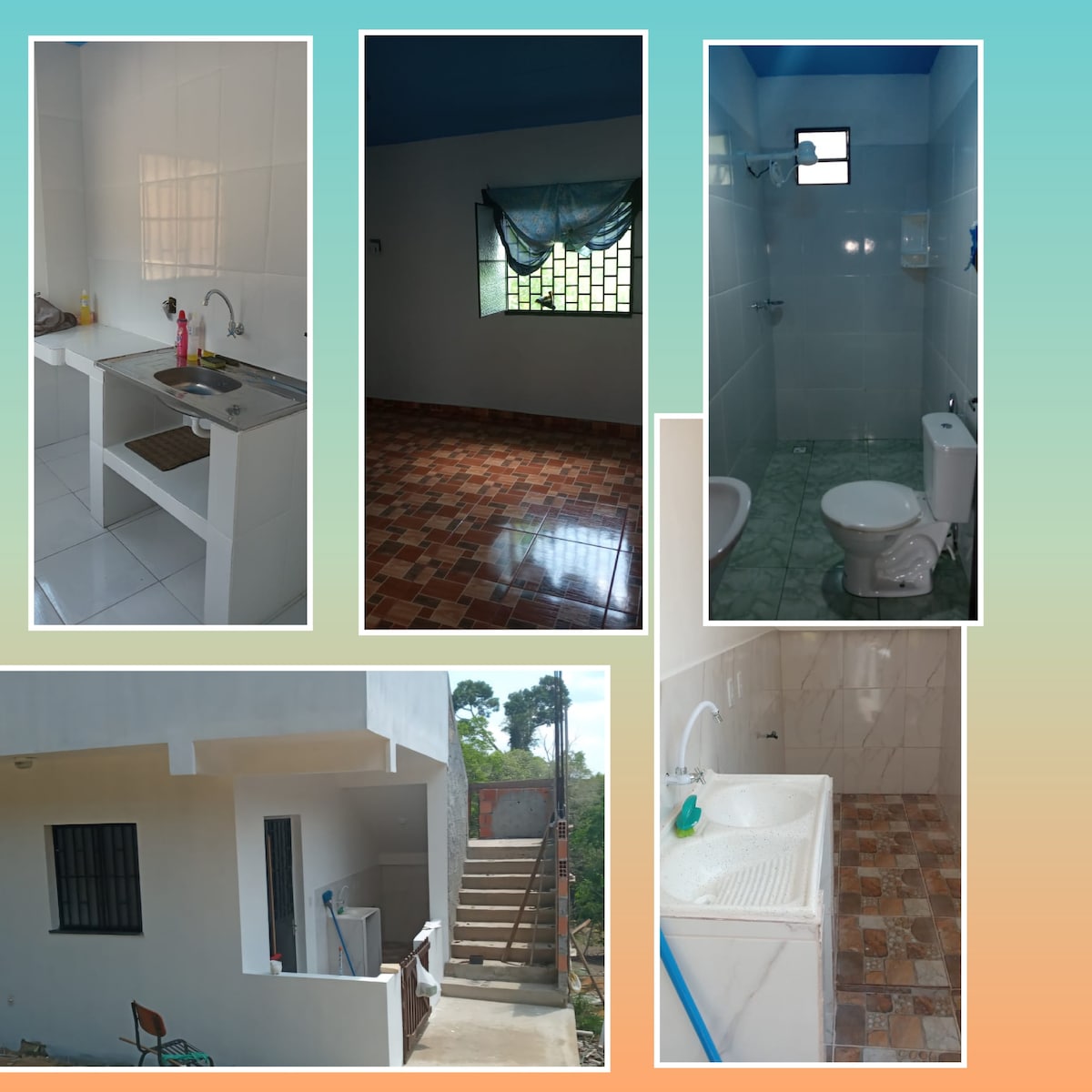 Kitnet confortável e reservada. Fica separada da casa principal, possibilitando a entrada e saída a vontade. Possui um quarto com cama de casal, um banheiro e uma cozinha/sala. Microondas, fogão sem forno, frigobar e cafeteira. Disponibilizamos lençol, travesseiros, toalhas e papel higiênico. Sem chuveiro elétrico no momento e não é permitido cães ou gatos