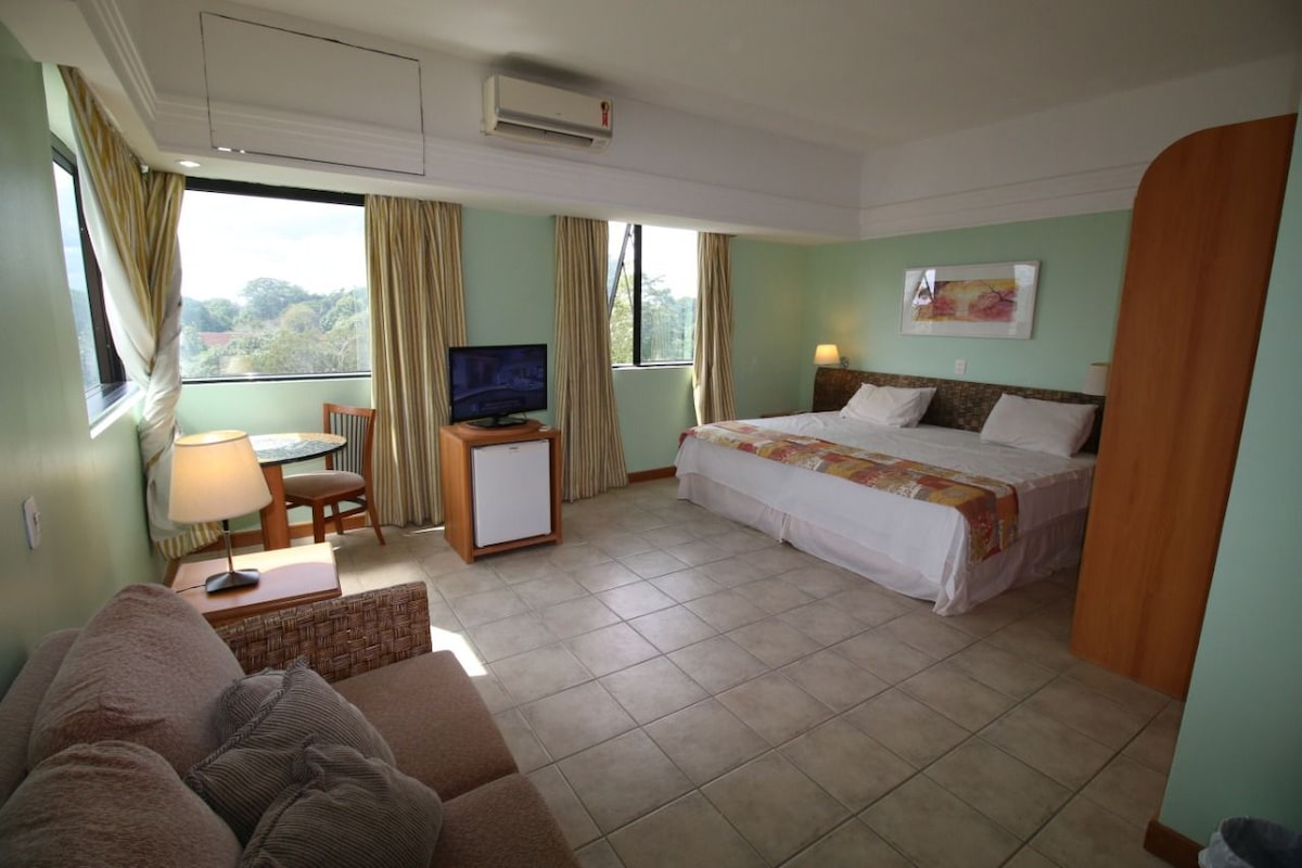 Quarto no Hotel Intercitu, em excelente localização, com fácil deslocamento para todos os pontos na cidade. A reserva NÃO inclui café da manhã. Trocas de lençois e toalhas no decorrer da hospedagem incidirão em cobrança adicional. Estacionamento gratuito mediante cadastro da placa do carro.