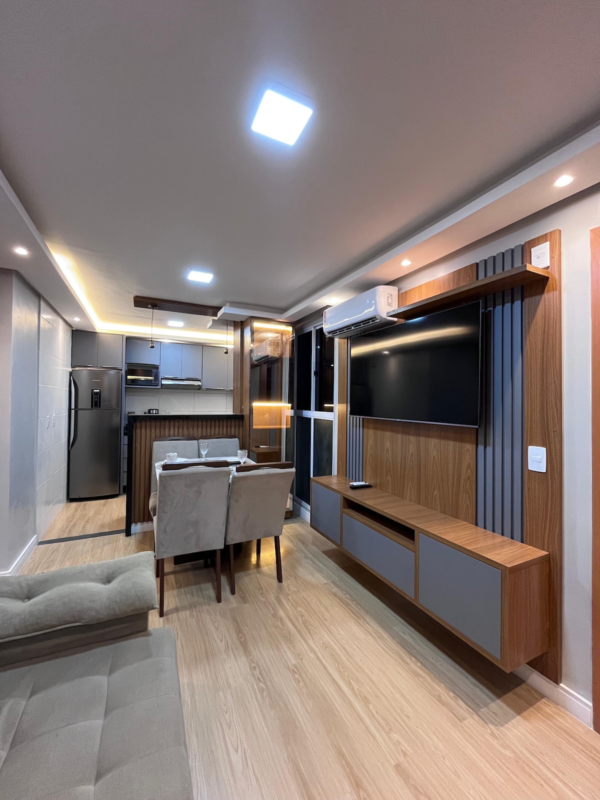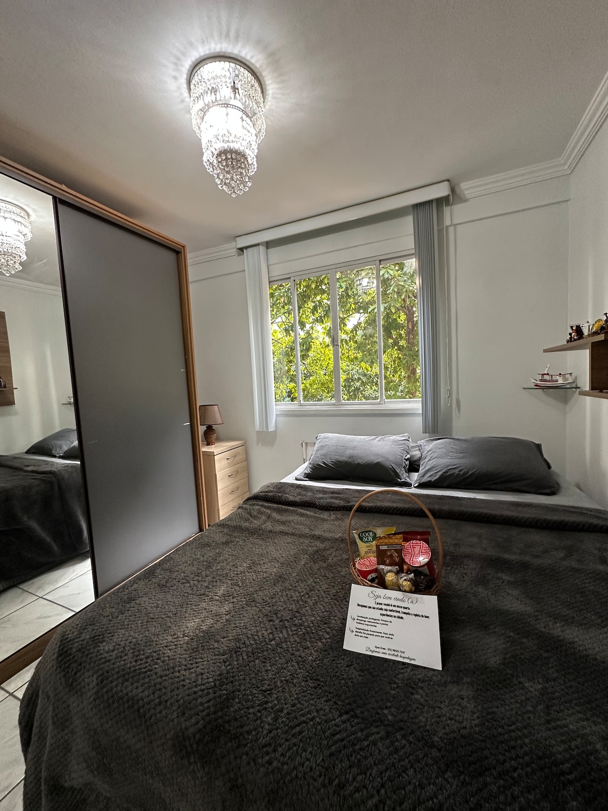 Bem-vindo ao seu refúgio moderno! Nosso apartamento oferece máximo conforto e tecnologia: ar-condicionado em todos os ambientes, luminárias elegantes, interruptores touchscreen, TV com streamings, fechadura eletrônica e vaga de garagem exclusiva. Perfeito para relaxar e explorar, está idealmente localizado perto do aeroporto e das principais atrações da cidade. Conforto e sofisticação esperam por você!