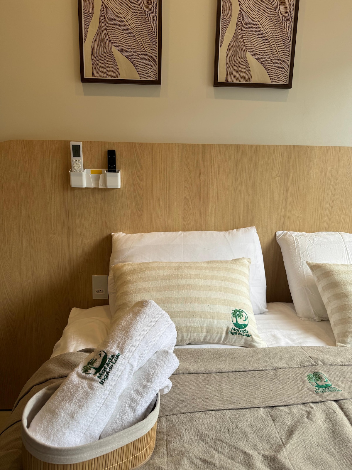 Flat no Tropical Executive Hotel bem projetado com linda vista para o rio. Quarto com ar-condicionado, uma cama queen Ortobom, lençol 1000 fios, TV 45”, wi-fi, mesa de jantar 2 lugares e sofá. Cozinha bem equipada com cooktop 2 bocas, depurador, purificador de água, cafeteira Dulce Gusto + cápsulas, panelas, liquidificador, geladeira, louças, utensílios de cozinha e microondas.