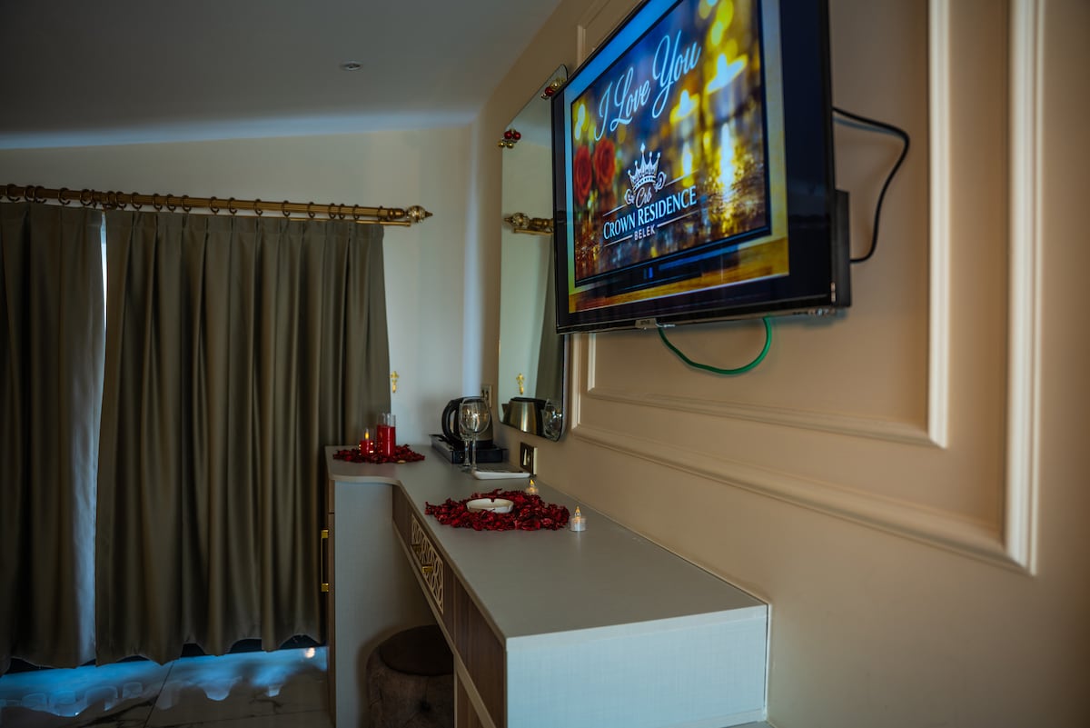 You’ll love the stylish decor of this charming place to stay.and you our location close to center of belek and close to beach and close to land of legend,for winter season from 5th of october 2025 ,0ur pool close , and price just include room only, with out breakfast and other services ,other can be with extra charges (coffee , tea ,slippers .....) CRB CROWN HOTEL & SPA