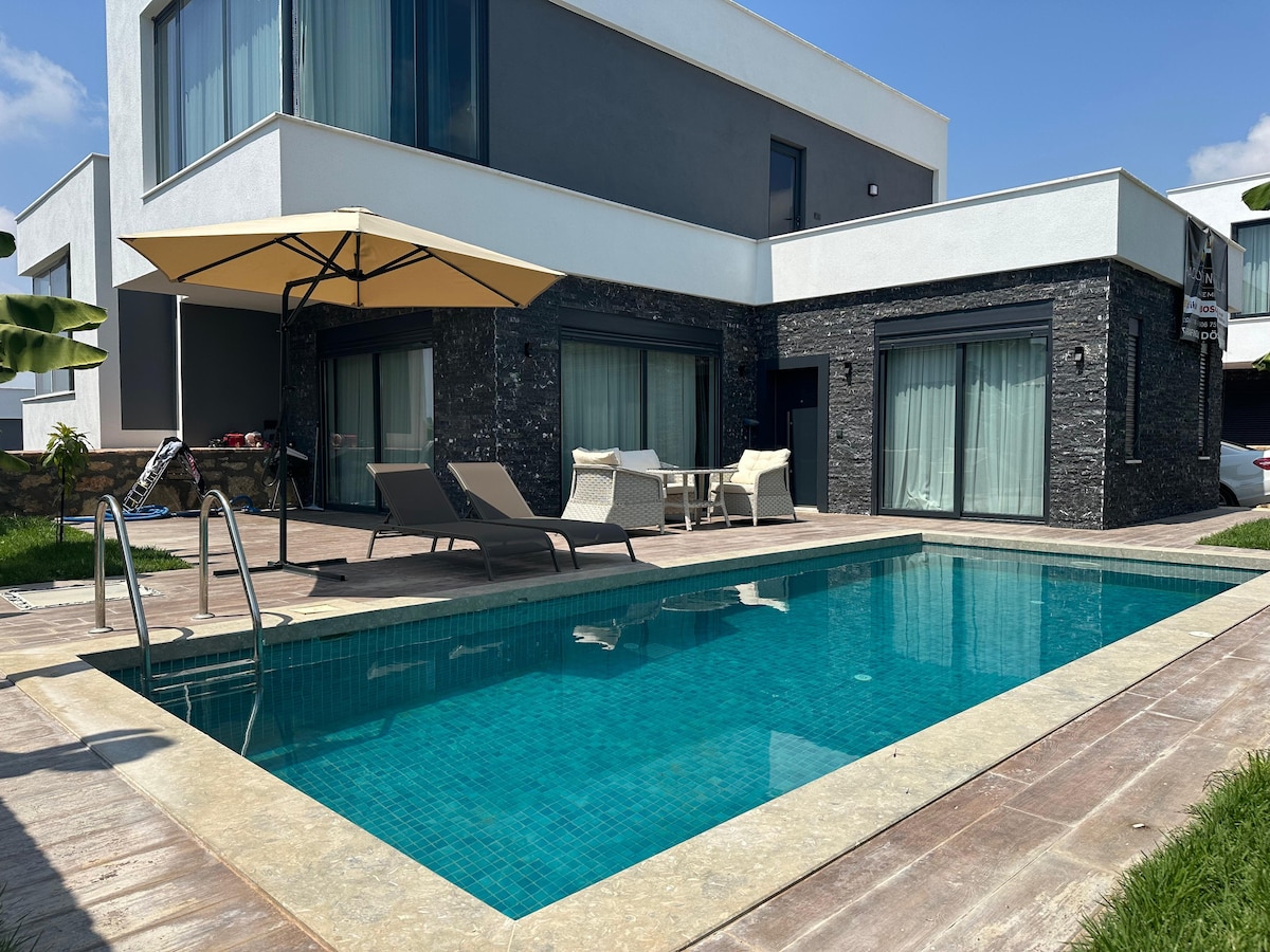 Everything you are looking for for a peaceful holiday is here. There is no need to climb stairs or walk around to reach the pool. The pool is right in front of you. While your children are playing, you can follow them from your home. Each room has an air conditioning unit. The house is 1.2km from the beach, 700m from the bazaar, 2.4km from the Ancient City. You can go by walk or public transport. The property has 3 individual houses. You wil have one. Not: Pool opening date is 1st of June.