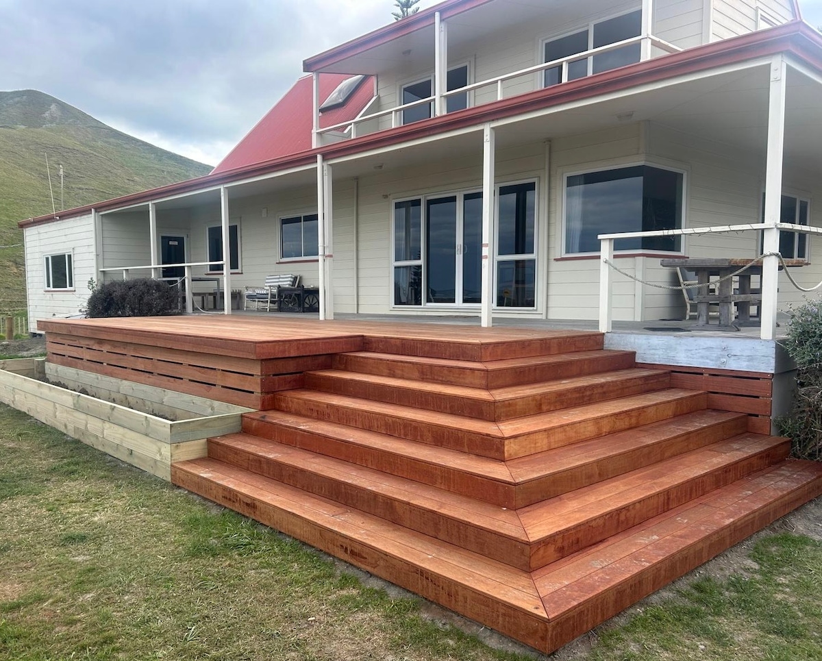 A sunny & spacious beach home surrounded by farmland. Water front views with a private access to a safe swimming beach & lagoon for younger children to enjoy. Great fishing , Paua & Crayfish Diving either from a boat or off the reef. Private off street parking with surrounding native bush and birds Whangaehu coastal walk views from Blackhead to Castlepoint Trek to the historic Rata tree on spectacular display from early to late December.