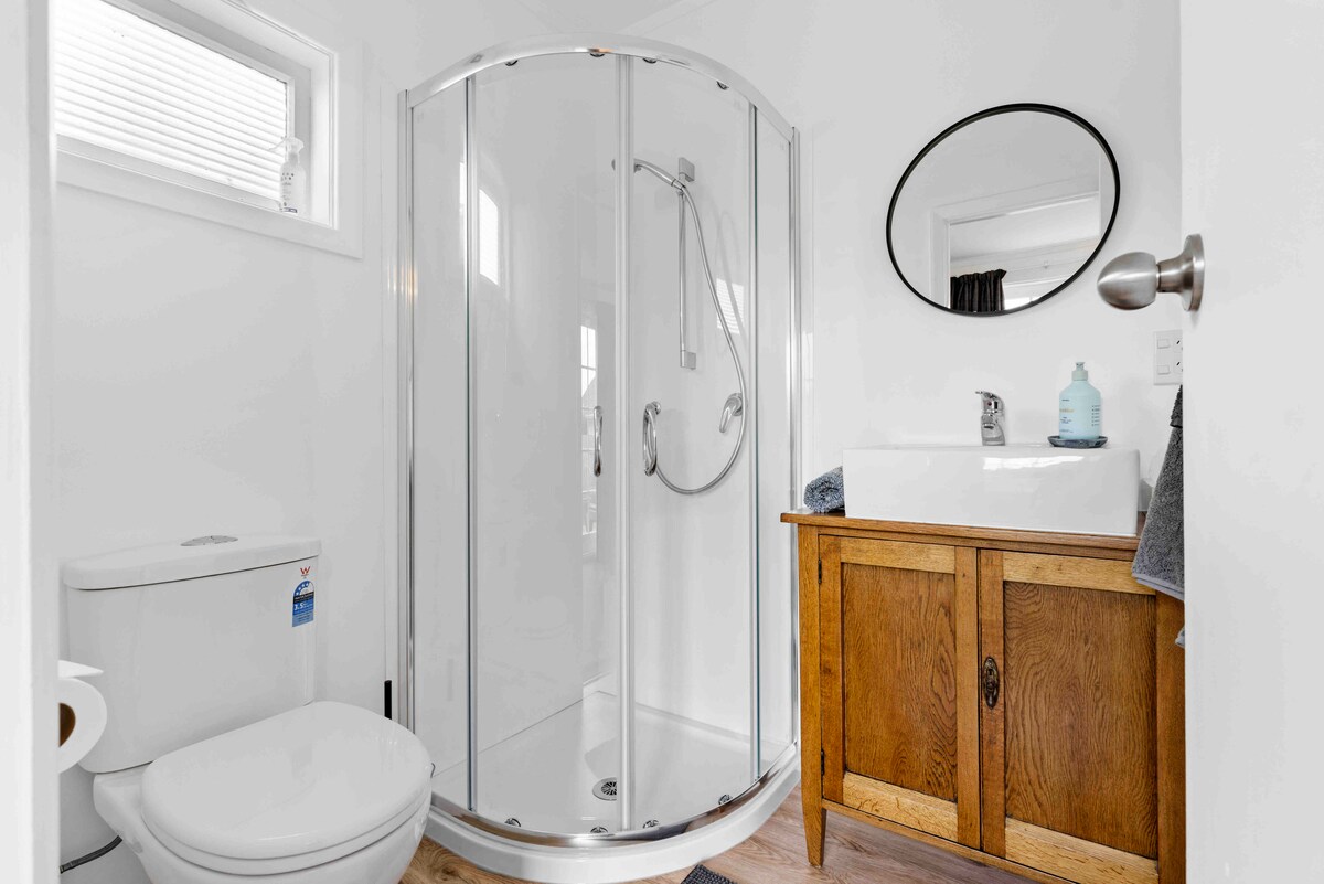 Jailhouse Ridge is a fully self-contained unit with its own private access, ideal for couples. It is surrounded with 7 acres of gardens, ponds & paddocks. Your own private spa awaits you on the deck & is serviced daily. With a Queen bed, fully equipped kitchen, en-suite & log fire, it has everything you need for a fantastic stay. The mezzanine floor, accessed by a steep staircase, has a sofa, 42" TV , Freeview, DVD, WIFI. An extra 32" TV with Chrome-cast is downstairs.