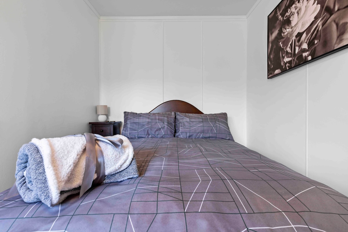 My husband and I welcome you to friendly Feilding. Our sleep out has an ensuite (shower, vanity, toilet), TV, wardrobe and queen bed with linen and towels. There is a jug with mugs, tea/coffee/milk and a fridge. There are no cooking facilities. The sleep out is separate to the house so you can come and go as you please. Easy self check in/out. My mum is a co-host so it really is family run. NB; breakfast isn't included and due to working full time, check in is from 5pm. Thanks :)
