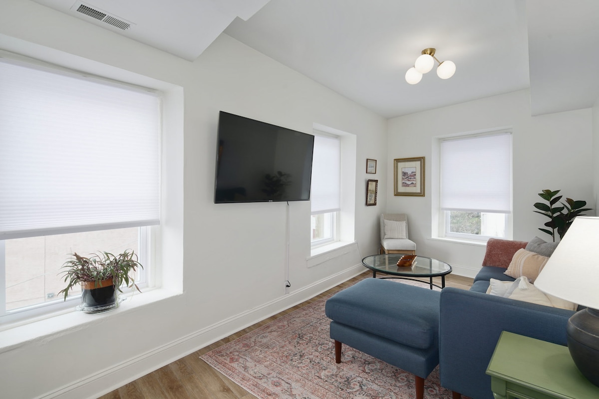 ✨Indulge in the modern comforts of this newly refreshed 3rd & 4th floor unit with views for days! Enjoy your morning coffee on the sun drenched deck overlooking Manayunk with views of Center City in the distance. The apartment is well appointed with a full kitchen, two queen bedrooms, a living room with Smart TV, a full bathroom on the main level and half bath on the upper floor. We are located just a short walk to Main Street, where you'll find a plethora of locally owned shops and restaurants.