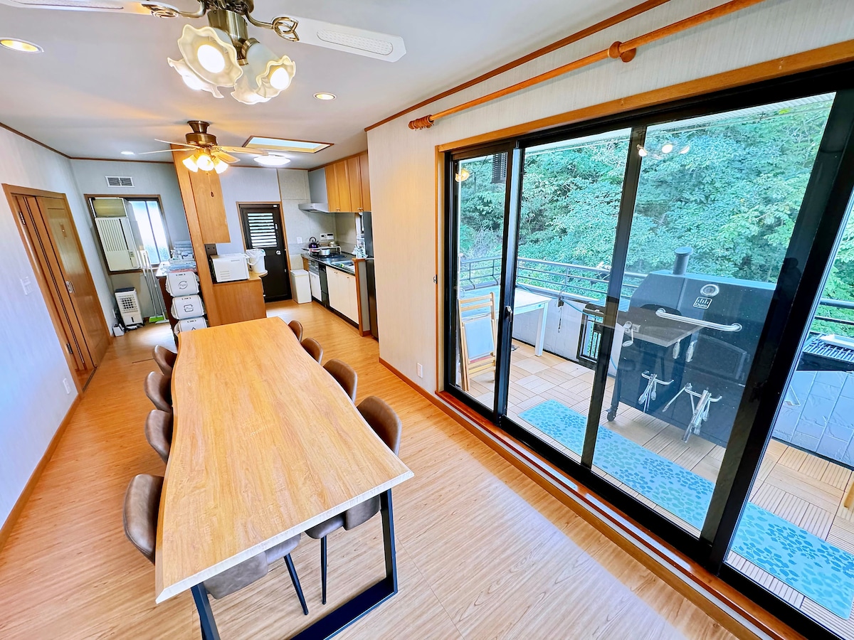 30 sec. walk to Yugawara Yoshihama Beach 4BDR house, Min. 4 guests - Max. 13 guests, Dogs ok, BBQ ok A Japanese traditional house was renovated for surfers, dog lovers, cyclists, and fishing lovers. BBQ rental available at Terrace, (or at Surf Garage when raining) Surf Republic - Surfing Board stands - Outdoor shower, direct access to bathroom from outside Dogs Republic (*small/middle size dogs only, max 3 dogs) - Dog space at Annex 2nd floor Cycle Republic - Bike parking space with roof
