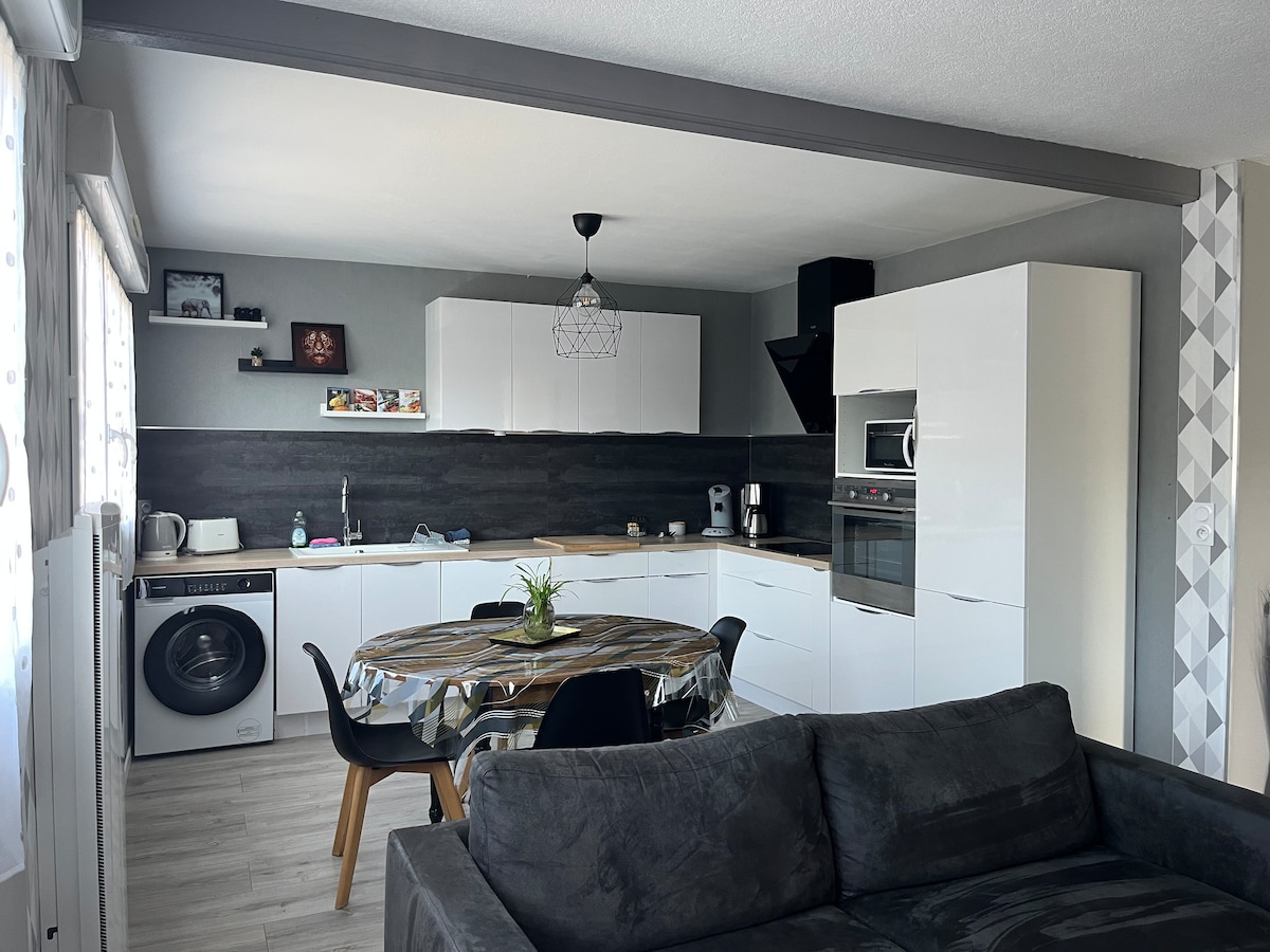 IDEAL POUR TELE TRAVAIL - CALME Appartement CLASSE 3 ETOILES TOURISME tout confort de 100m2 refait à neuf avec terrasse de 20m2 pour 4 personnes ,vue panoramique exceptionnelle sur la baie du Mont St Michel / Granville dans une maison avec jardin fleuri avec parking fermé. Nettoyage renforcé Plage a proximité de sable blanc et commerces à 2min Grande tranquillité. Nous sommes proches de la Thalasso ,visite des zoos, les iles Chausey, un golf de 27 trous un Casino ouvert, Mt St Michel