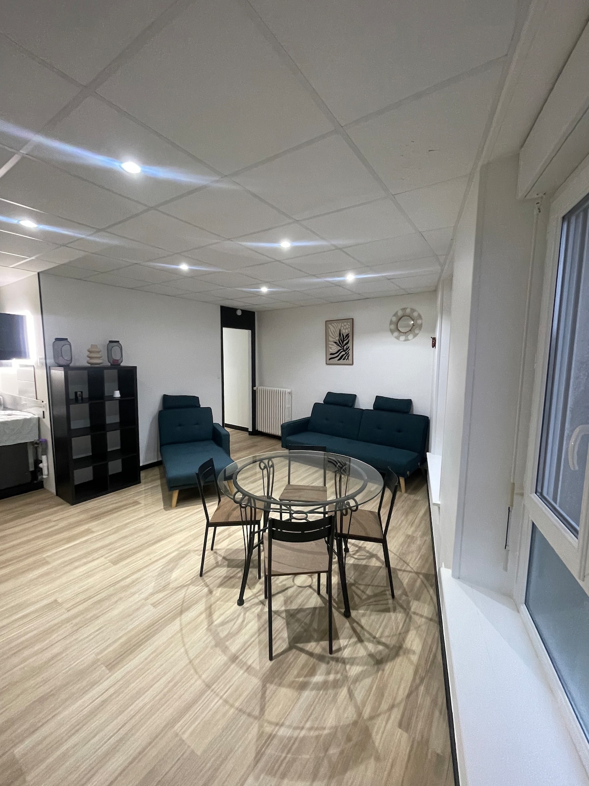 In Port-en-bessin At the heart of the Landing sites (D-Day) between Omaha beach and Gold Beach. Renovated apartment, on the ground floor, in a quiet and pleasant residence A bedroom (queen size bed) with a slight view of the port Living room with two large glass doors , double sofa bed, big TV. A fully equipped kitchen open to the living room. A bathroom with a large shower. A private parking space at the doors of the apartment. All shops within 2 minutes on foot.