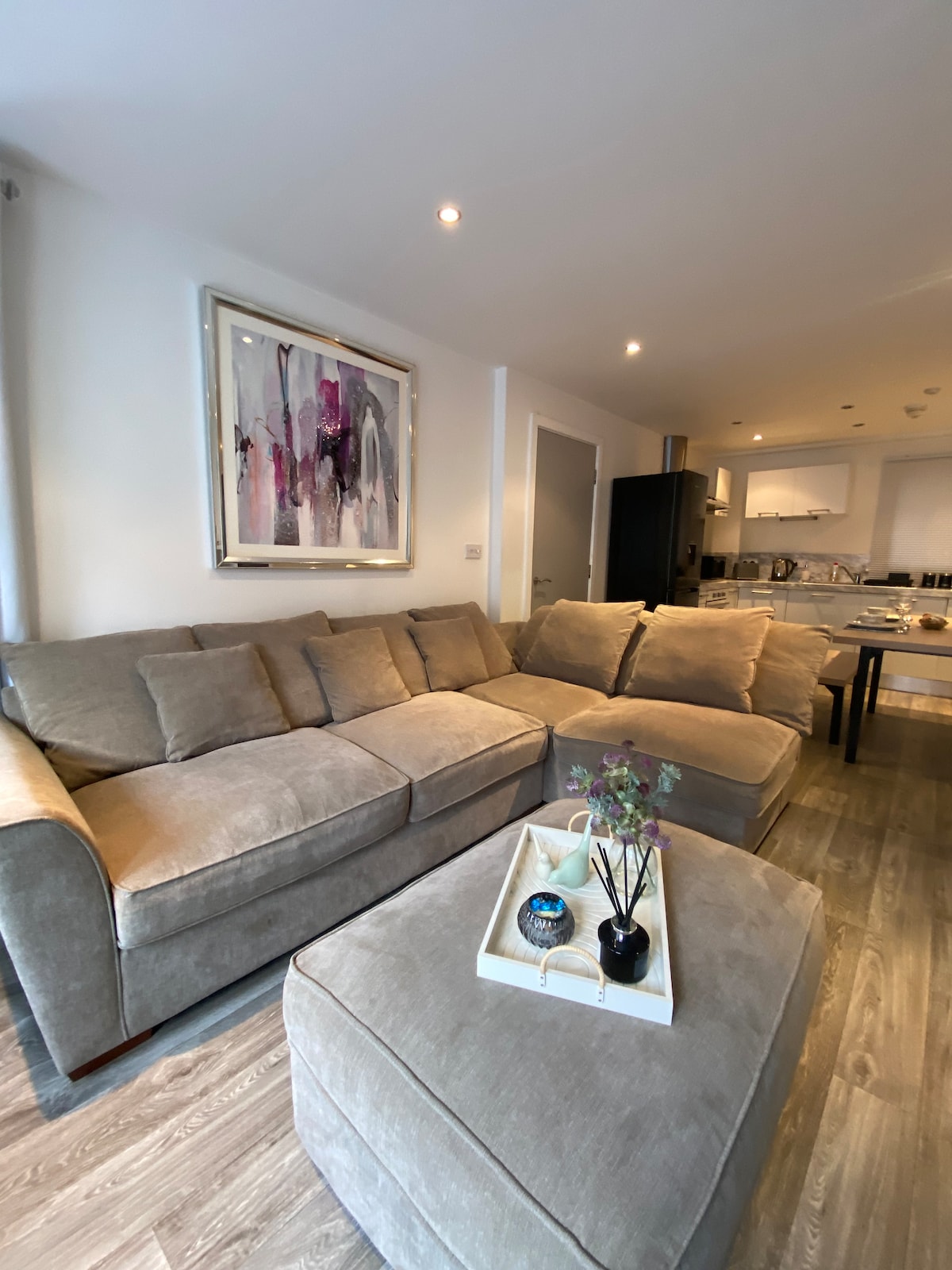 A contemporary & stylish apartment which is centrally located next to the Spinningfields and New Bailey area. Recently renovated with everything you’d expect from a high end residence + super fast WiFi. The bedroom boasts luxury extras like a king size bed with a simba hybrid mattress and hotel quality 400 TC Egyptian cotton bedding as well as a 43” LG tv with Netflix. The kitchen is fully stocked including a L’or coffee machine and the living room features a 55” Samsung TV and Netflix.