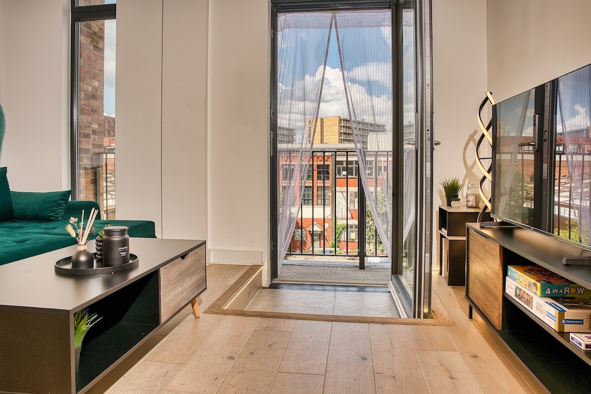 Luxury duplex penthouse in Manchester’s Northern Quarter, surrounded by shopping, entertainment & nightlife. Now relaunched by Domu Stays with refreshed hosting. • Spacious 2-bed, 2-bath duplex for up to 6 guests • Open-plan living with dark green theme • Prime location near Printworks & transport • Full kitchen, TV, WiFi, toiletries • Easy self check-in with smart lock