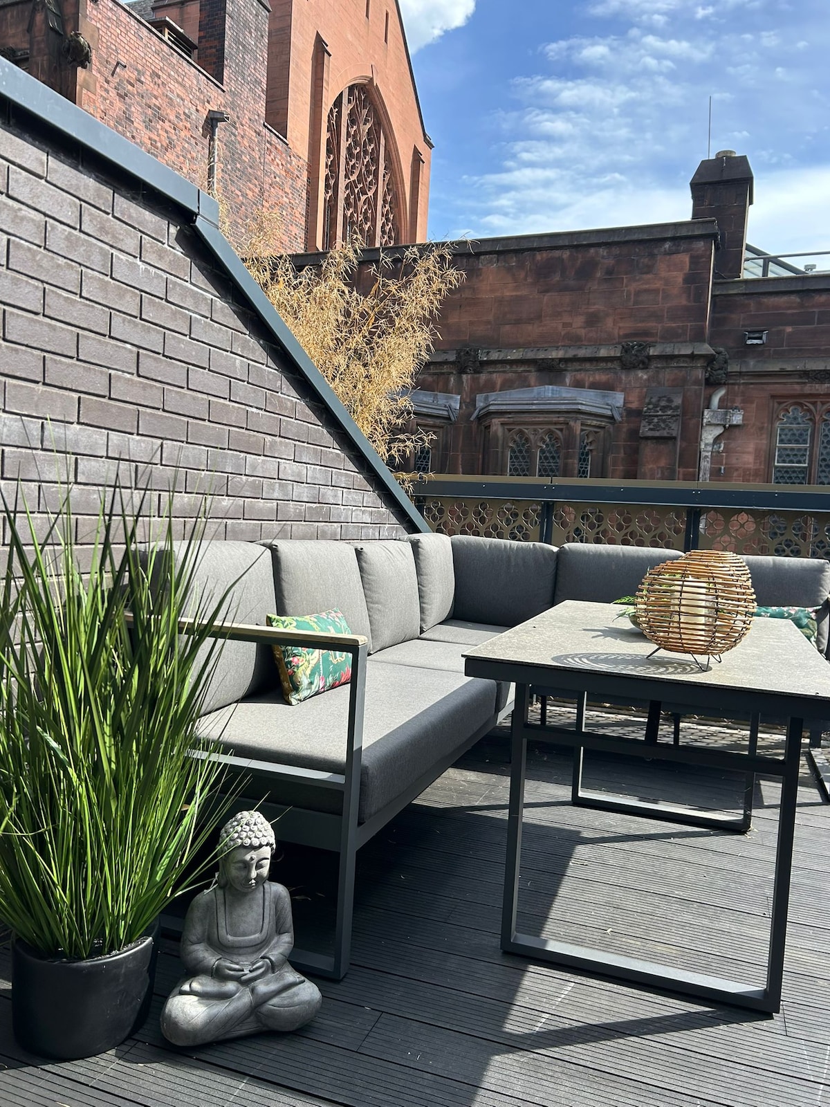 Elegant rooftop living with historic views and free private parking – your retreat in Spinningfields.” Set over 4 floors 2-bedroom, 3-bath townhouse in the heart of Manchester. This thought out home features 2 bedrooms, a bright open-plan living area and a private rooftop terrace. This townhouse offers the perfect balance of comfort and sophistication. Ideally located in Deansgate, a stone’s throw away from many restaurants and bars.