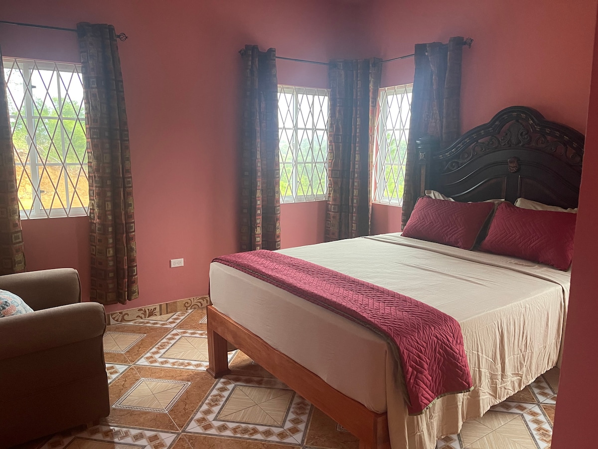Forget your worries in this spacious and serene space. This beautiful 2 bedroom apartment is located in the cool breezy hills in Mandeville Manchester. It's equipped with hot water,wifi, free parking, full camera systems around the property for our guests security. It's attached to a single family home with separate entrance. It's very clean and spacious with lots of outdoor lights, Nights are very cool which makes for a comfortable nights rest.