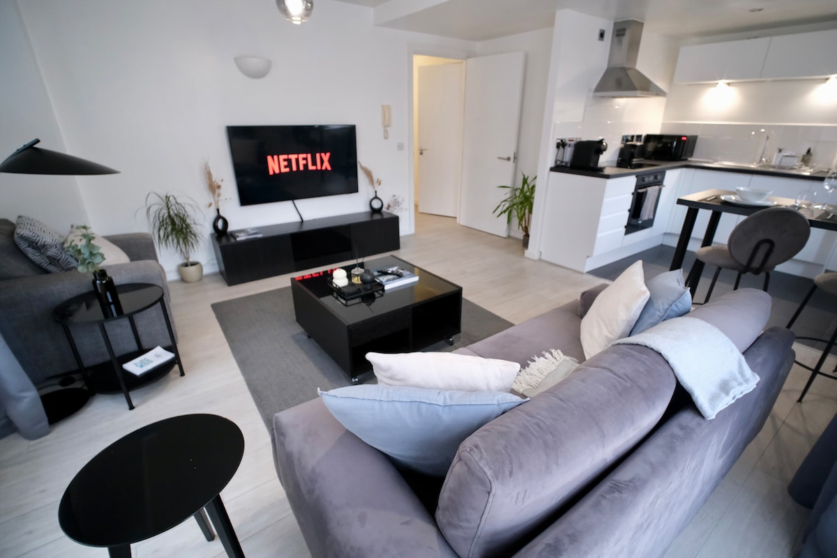 Modern 1 Bedroom apartment in Red Brick Industrial Mill Conversion King-size bed, stylish design, and private parking. Located near Co-op Live Arena and Etihad Stadium, it’s perfect for concerts, matches, or city breaks. Enjoy a 10-minute canal-side walk to Manchester city centre. Includes fast Wi-Fi, smart TV, fully equipped kitchen, fresh linens, and hotel-style comfort. Ideal for couples, solo travelers, or business guests. Book now for a premium stay in Manchester!