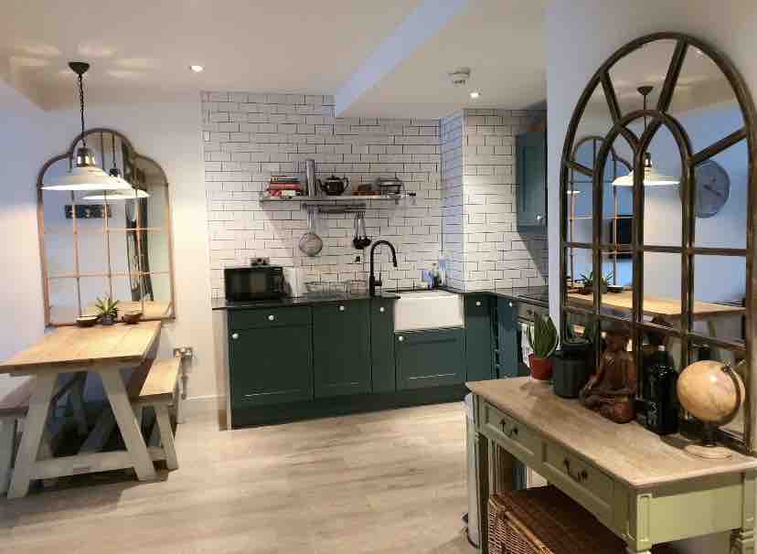 Luxury flat in centre of Poynton. Only 10 minutes from Manchester airport and a short walk to railway station offering good links to Manchester (20 mins) and London. Easy access to M56 and M60 motorways and beyond. Poynton is a bustling ‘village’ on the edge of Cheshire and close to The Peak District. Located centrally, the flat has numerous bars, restaurants and shops (including 3 supermarkets) right on its doorstep. Easy access to Middlewood Way, The Macclesfield Canal and Lyme Park.