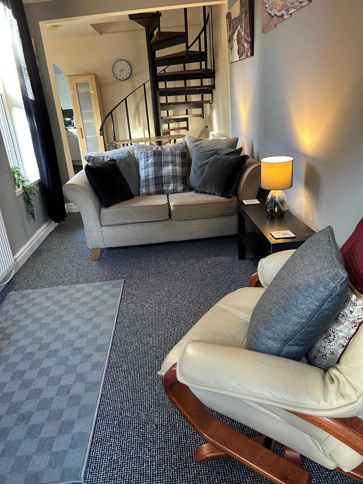 Private cottage in the front garden of the host’s home in Wilmslow, with free parking. The minute you enter you’ll feel right at home in your own stylish hideaway with comfortable furnishings. Entrance hall leads to a fully equipped kitchen (oven & hob, dishwasher, microwave, fridge), table & chairs, desk, sofa, smart TV and electric fire. At first floor a relaxing spacious bedroom beckons and bright modern shower-room. Shared walled courtyard. Access to Motorway network /Manchester Airport.