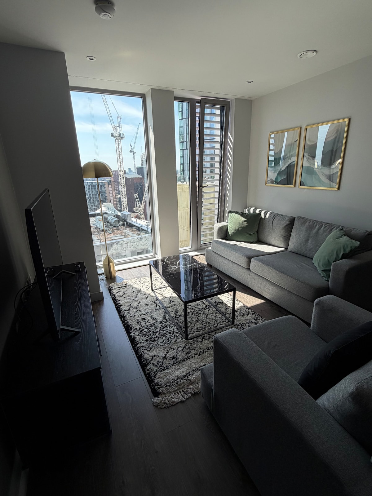 Modern one-bedroom retreat with a personal balcony, offering a comfortable blend of coziness and the polished ambiance of a luxury hotel. Just a short stroll from the vibrant spinningfields and central Manchester's shops and bars. Conveniently located near the AO arena and various transportation options, granting easy access to football stadiums and more. Special discounts offered for extended stays. Extra discount available for long stays, please ask for details.