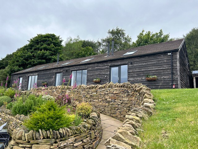 Beautifully converted barn (sleeps 6) & cosy cabin (extra 2ppl) in a quiet gated farm hamlet of properties in the Saddleworth countryside with stunning views ✶ Enjoy your own wood fired hot tub, fire pit, private woodland & lake ✶ Friendly farm animals, pygmy goats & space for kids to play♡ Log burners, boards games, modern kitchen, stylish cabin. Perfect for families & friends. Excellent access to walks, villages, pubs, M62, Manchester &Leeds. A unique countryside retreat for lasting memories